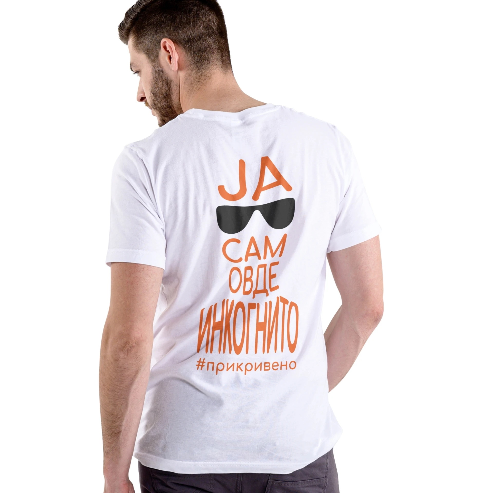 Тараба бела мушка мајица Инкогнито, са кратким рукавима стандардног regular fit кроја, састава 100% памук. Штампано техником сито штампе. Свака мајица долази са поклон стикерима и флајером са Тараба мотивима, упакована у брендирану Тараба кутију.