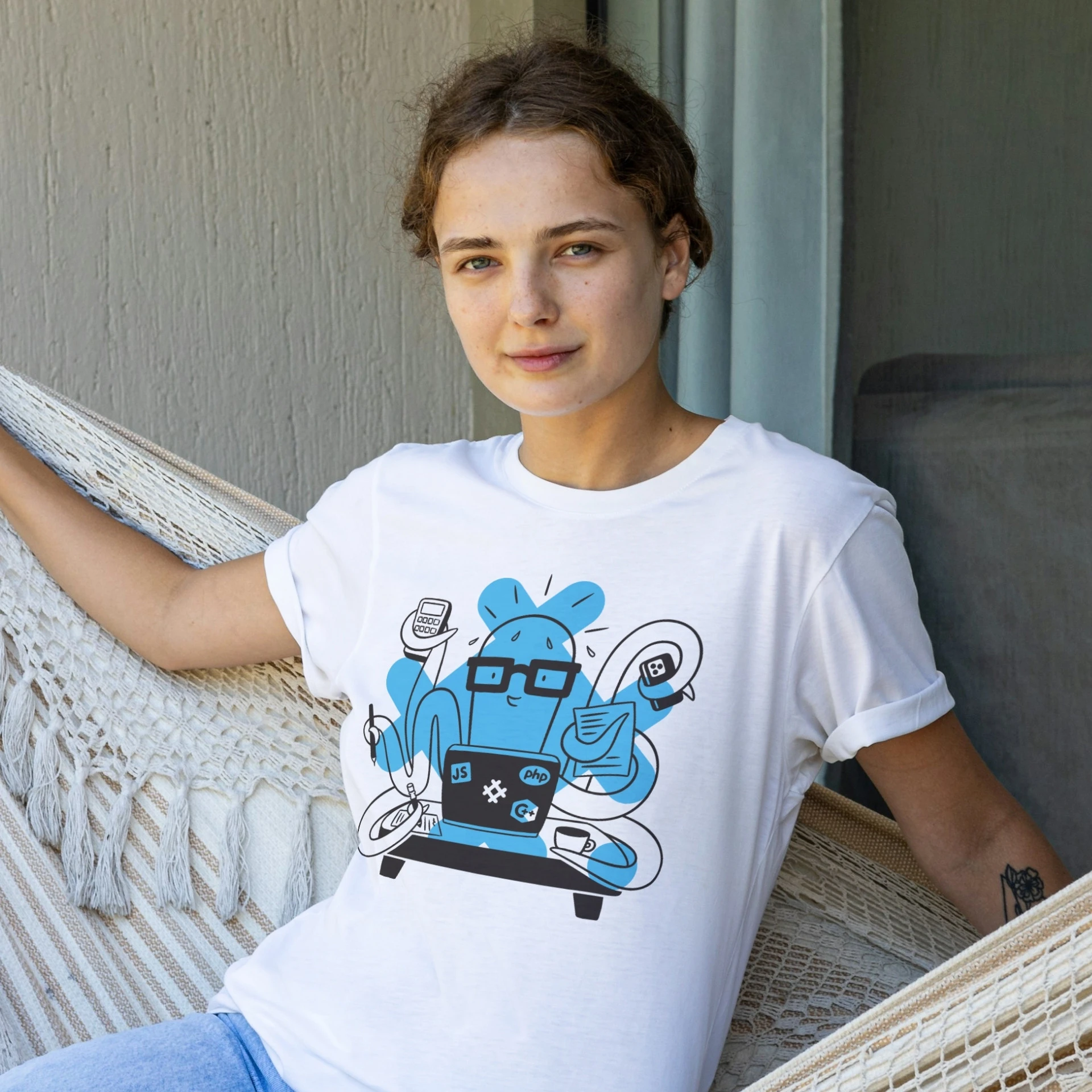 Тараба бела женска мајица Све и одмах, са кратким рукавима стандардног regular fit кроја, састава 100% памук. Штампано техником сито штампе. Свака мајица долази са поклон стикерима и флајером са Тараба мотивима, упакована у брендирану Тараба кутију.