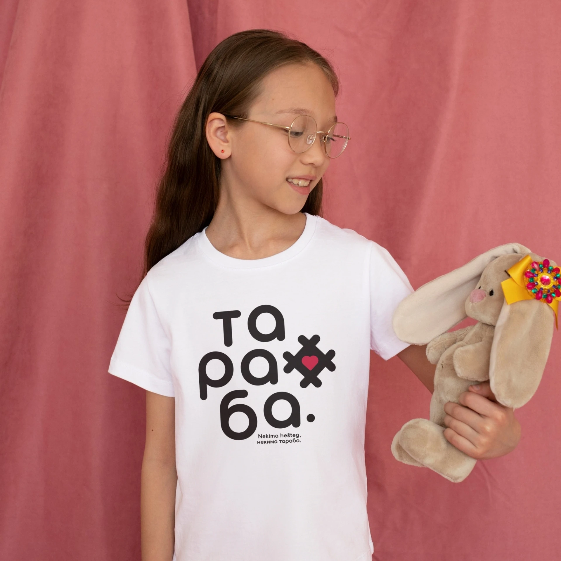 Тараба бела дечија мајица Тараба Стандард 2 - Црвено Срце, са кратким рукавима стандардног regular fit кроја, састава 100% памук. Штампано техником сито штампе. Свака мајица долази са поклон стикерима и флајером са Тараба мотивима, упакована у брендирану Тараба кутију.