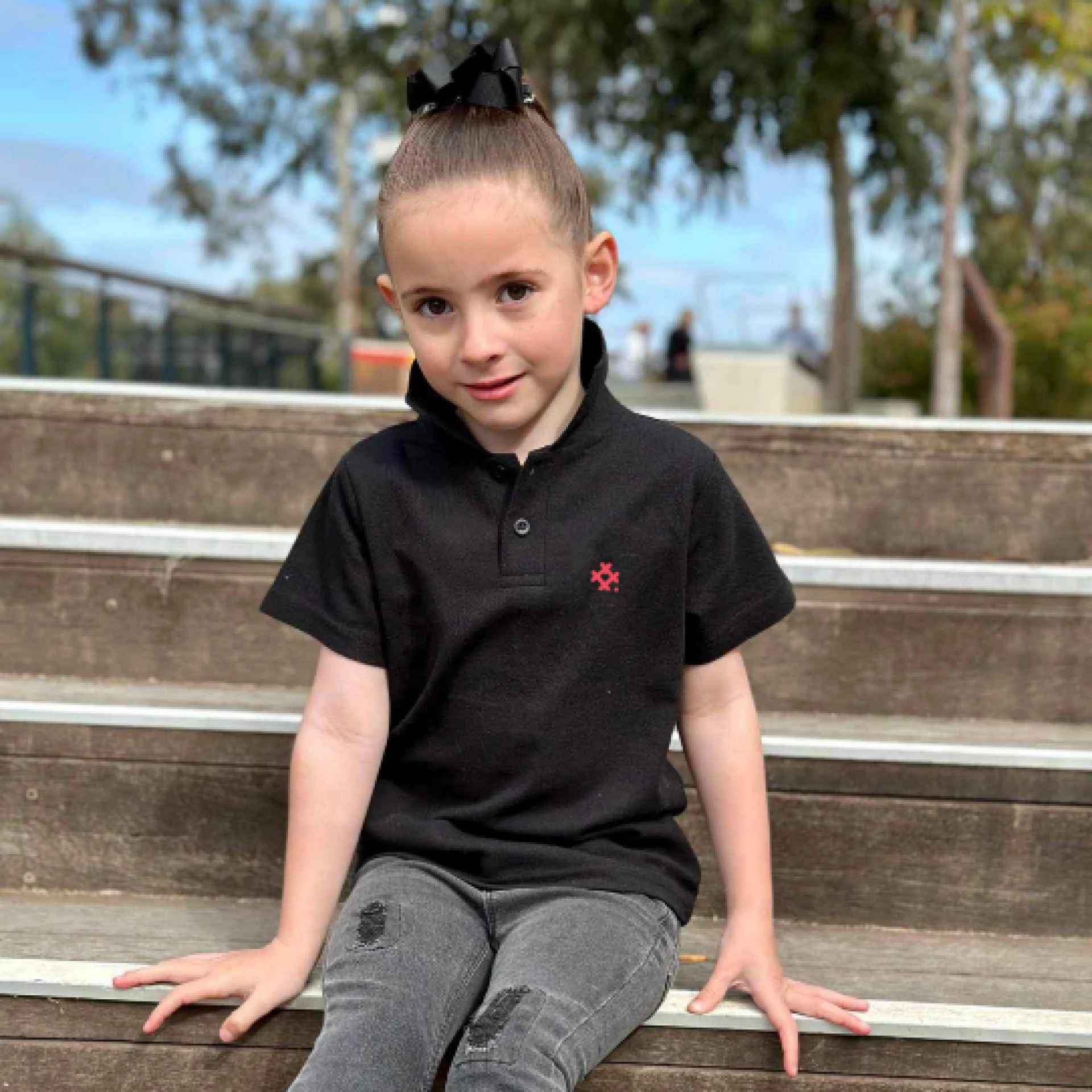 Тараба црна дечија поло мајица Срце Србије, са кратким рукавима стандардног regular fit кроја, састава 100% памук. Мајица са ситним везом. Свака мајица долази са поклон стикерима и флајером са Тараба мотивима, упакована у брендирану Тараба кутију.